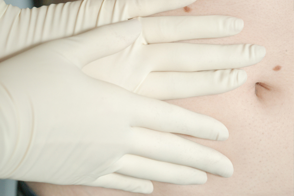 Pregled obsega preučitev obstoječe dokumentacije, pogovor o dosedanjih boleznih in trenutnih težavah ter klinični pregled bolnika z natačnim pregledom, otipanjem in poslušanjem trebuha.